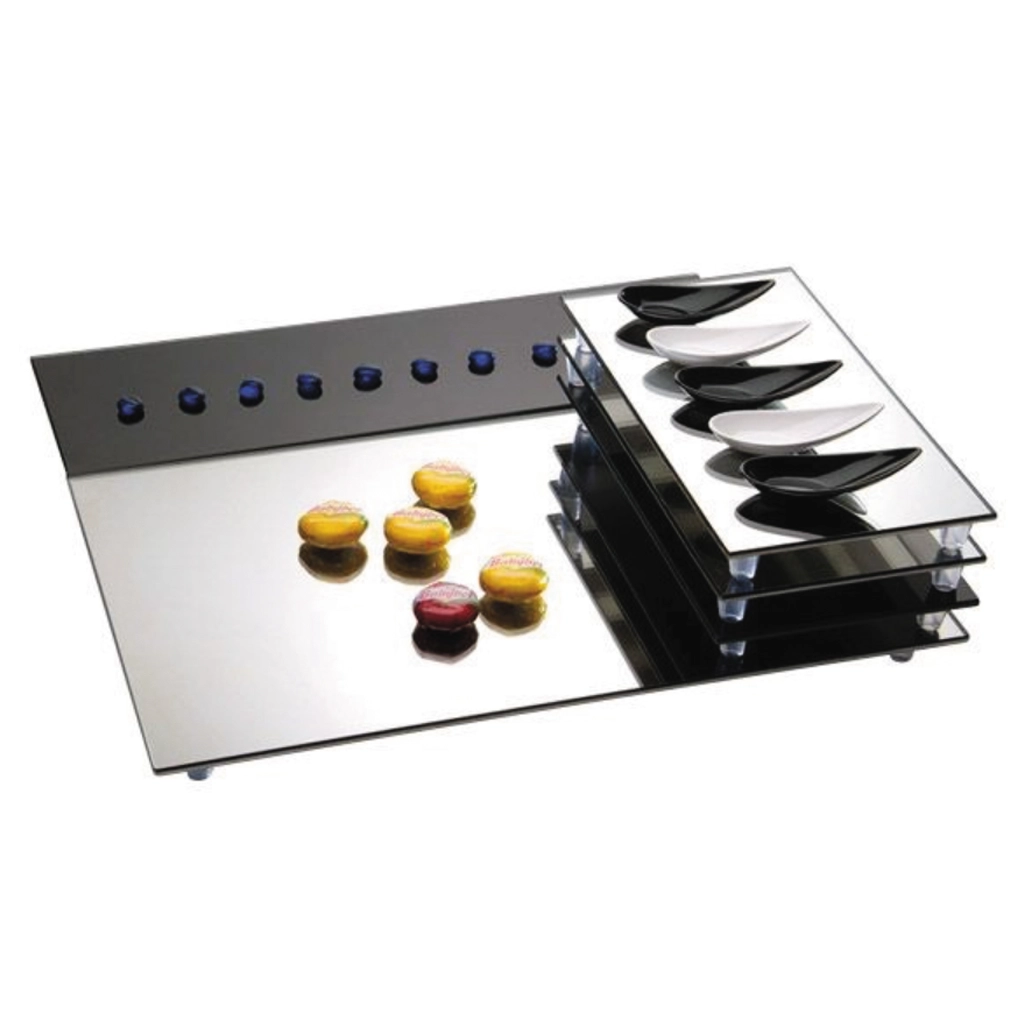 Glasplatte in silberner Spiegeloptik, mit Antirutsch-Füsschen