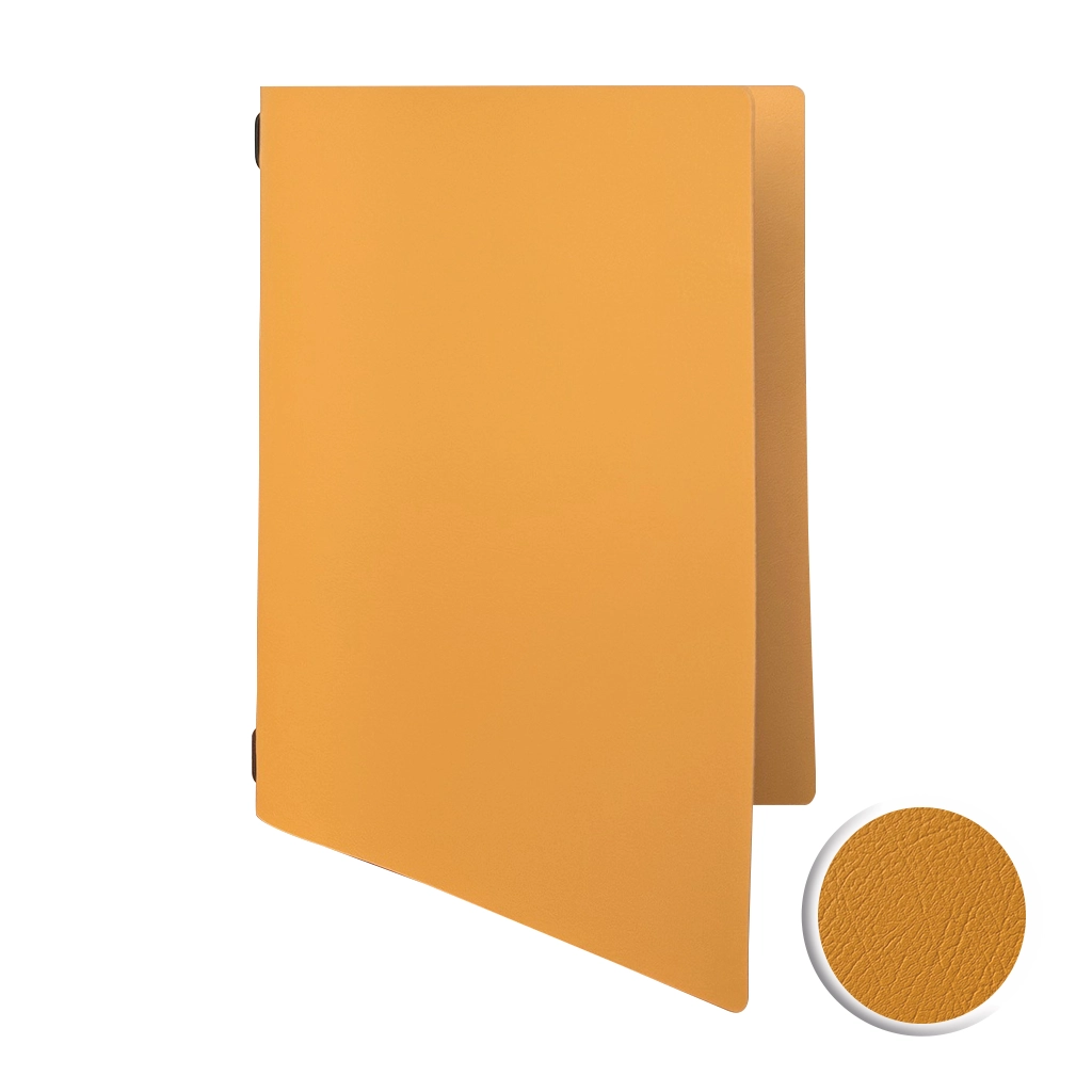 La carte de menu « Ambiente » en jaune moutarde apporte une touche originale et confère un look moderne. Fabriquée en cuir Spectro recyclé, elle allie design et durabilité. Personnalisable avec un logo – idéale pour les établissements de restauration branchés.
