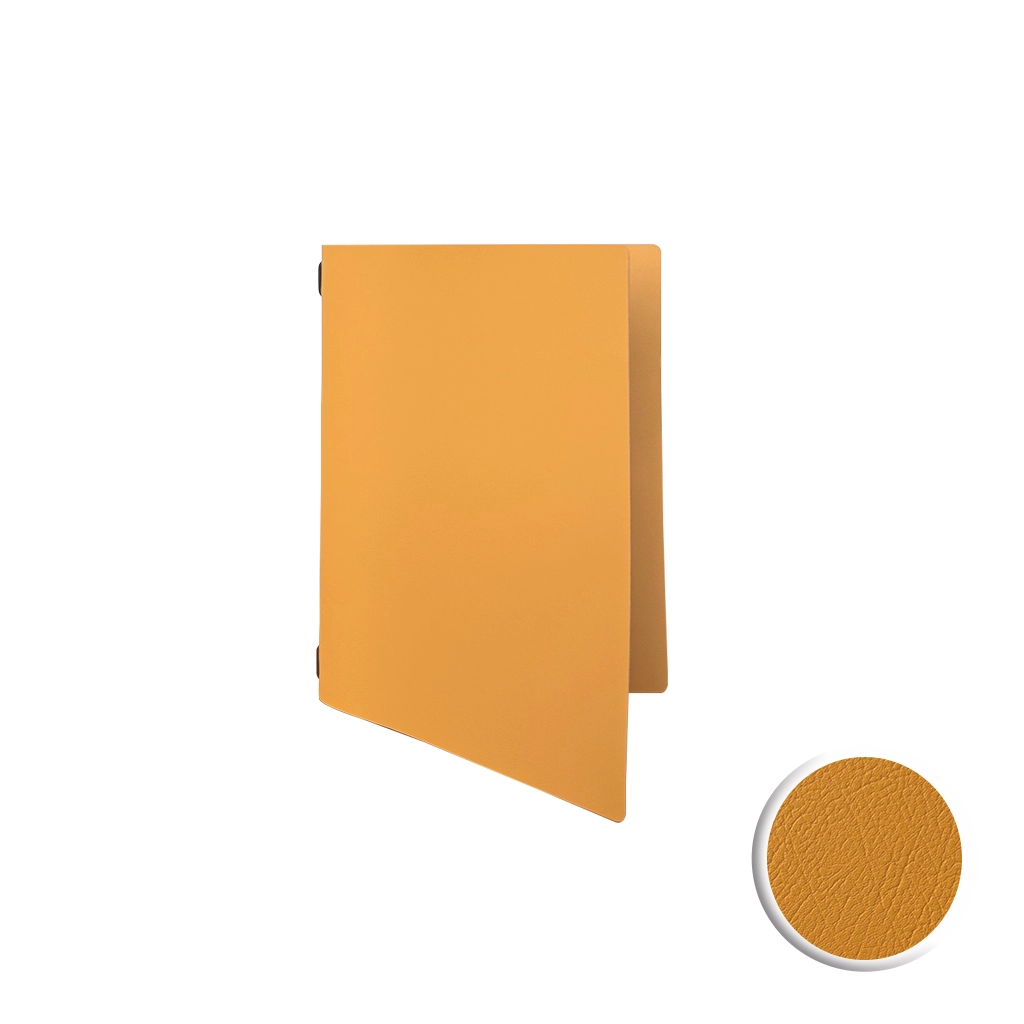 La carte de menu « Ambiente » en jaune moutarde apporte une touche originale et confère un look moderne. Fabriquée en cuir Spectro recyclé, elle allie design et durabilité. Personnalisable avec un logo – idéale pour les établissements de restauration branchés.
